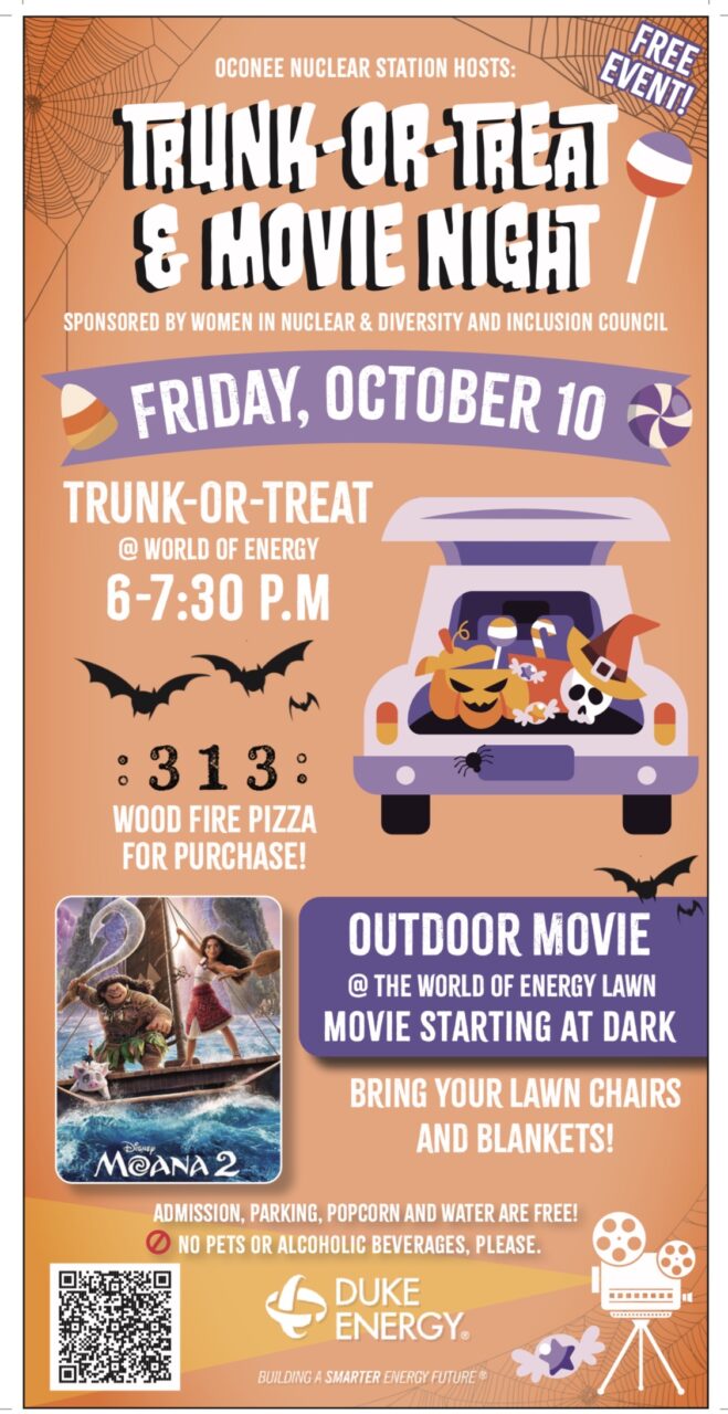 Oconee Nuclear Station Hosts: Free Trunk-or-Treat and Outdoor movie night