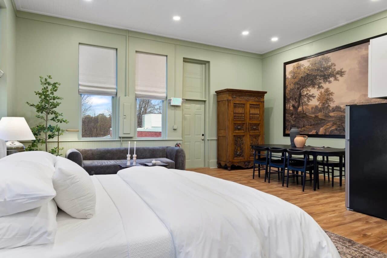 For a stay that keeps you right in the heart of downtown, consider the Green Suite at Walhalla Performing Arts Center. This spacious 750-square-foot suite offers all the comforts of home, including a king-size bed, flat screen TV, Wi-Fi, a comfortable sofa, master bathroom, desk space, and a full kitchenette. It’s a perfect option for guests who want convenience, comfort, and the ability to walk to shops, dining, and entertainment. Whether you’re in town for a weekend getaway or catching a show downstairs, the Green Suite makes your stay both easy and enjoyable.