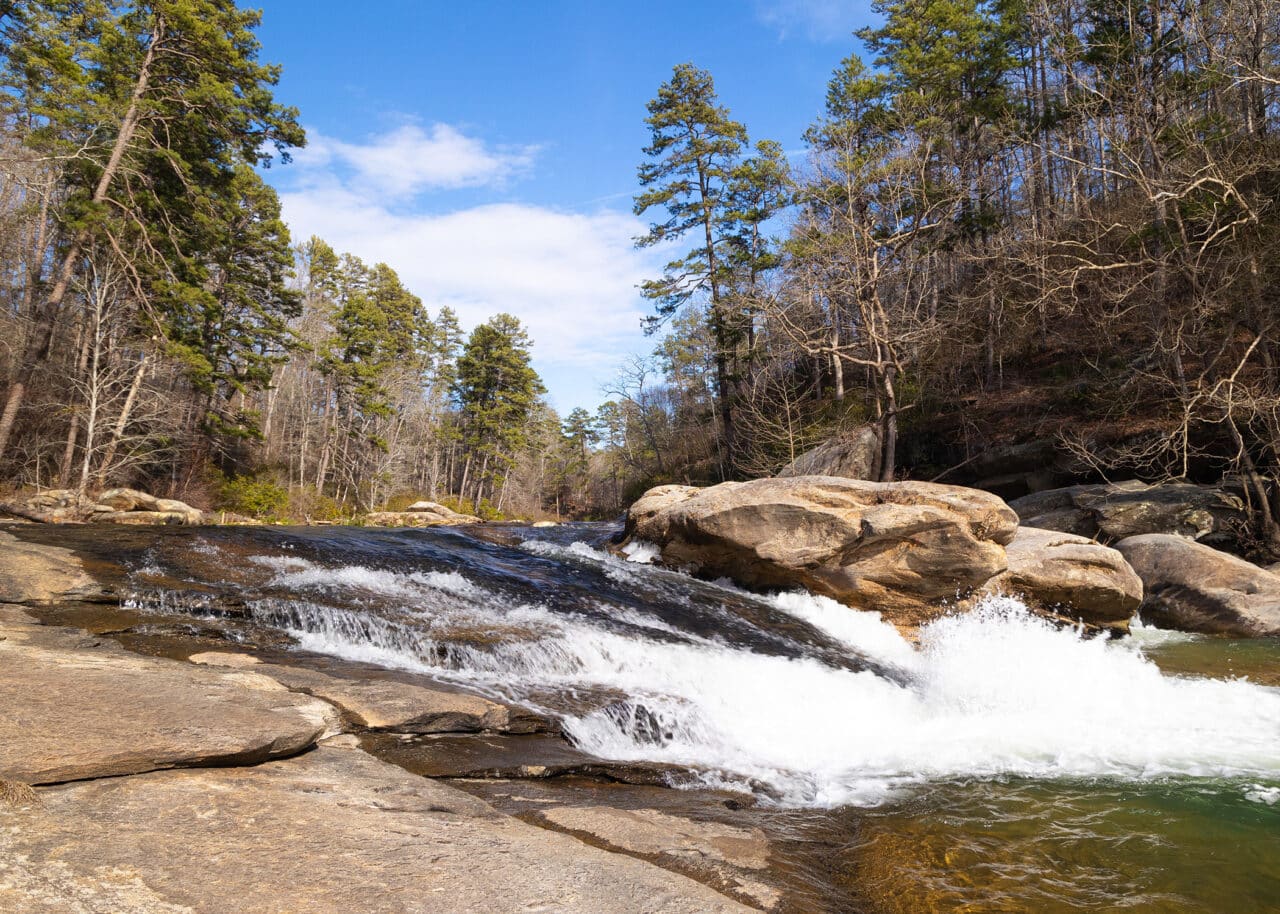 Oconee County is home to countless hiking trails and over 300 waterfalls. While some hikes are more family-friendly than others, many can be uneven and quite slippery. Rocks near waterfalls are often wet, mossy, and smooth, which can make them extremely slick. Stay on marked trails and take extra care when walking near water.